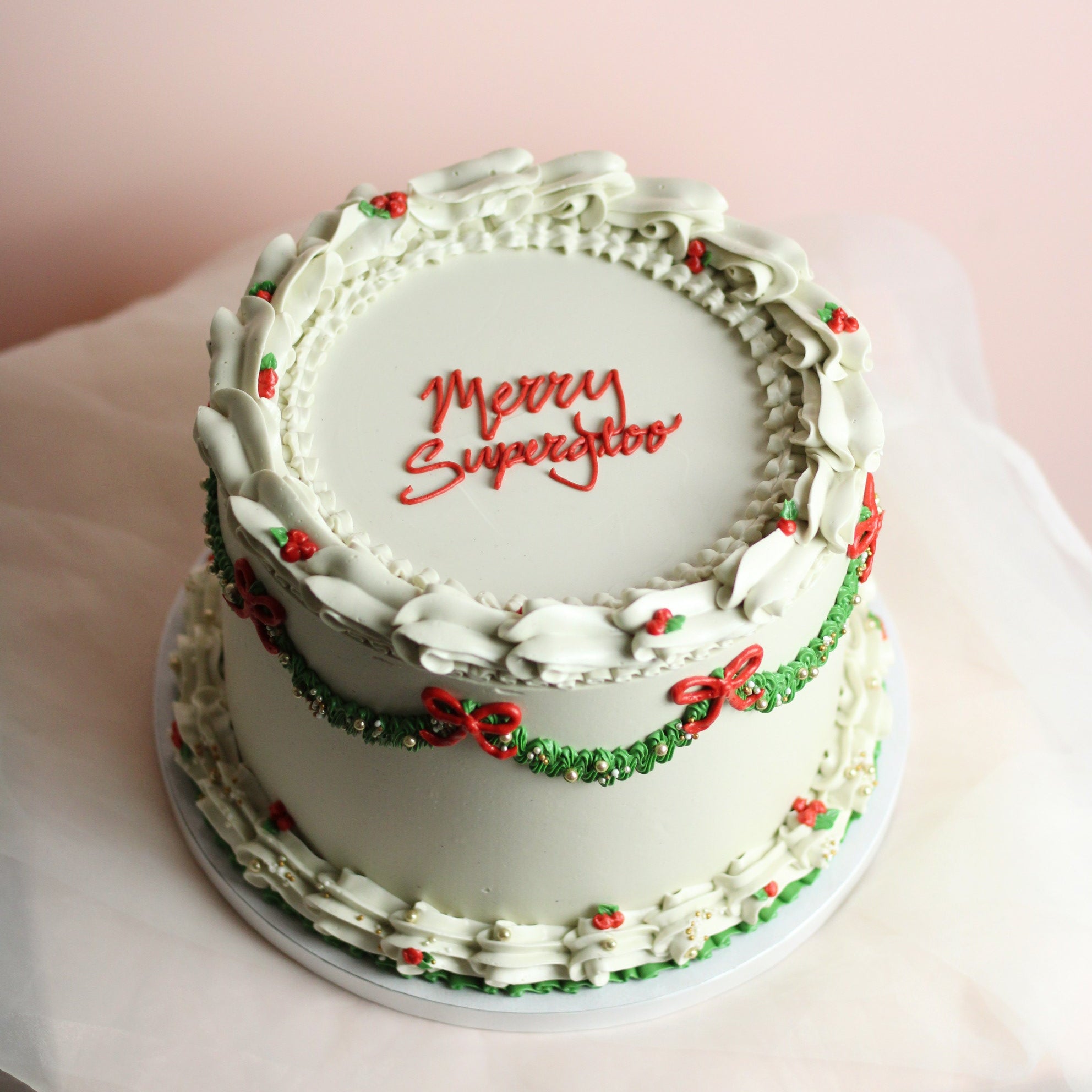 Celebrate the Holiday season with our Vintage-style cake, in classic festive colors and a sparkly twist!